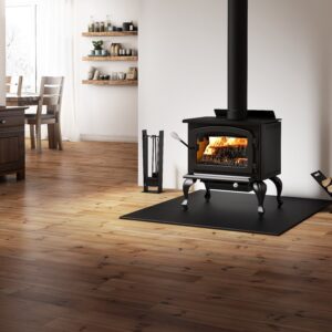 Of medium size, the Columbia II wood stove is ideal for heating spaces up to 1,800 ft² with a maximum heat output of 65,000 BTU/h. EPA certified at 1.26 g/h, this non-catalytic unit represents an eco-responsible heating source. The Columbia II is equipped with side panels to reduce clearances to combustible materials, as well as a top air deflector, to boost air movement through the room.