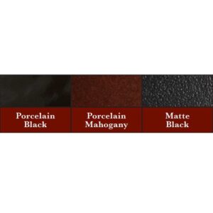 - Available in three finishes: porcelain black, porcelain mahogany, and matte black