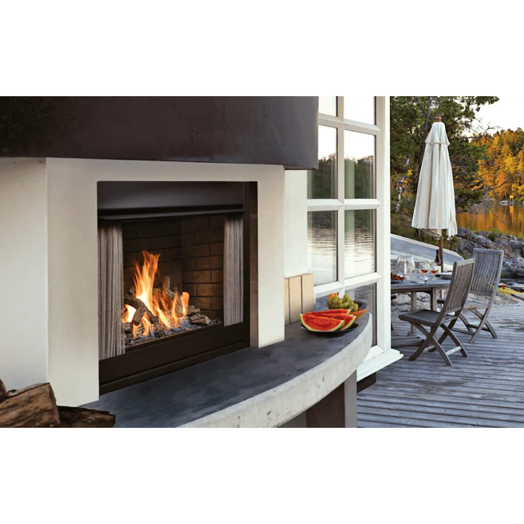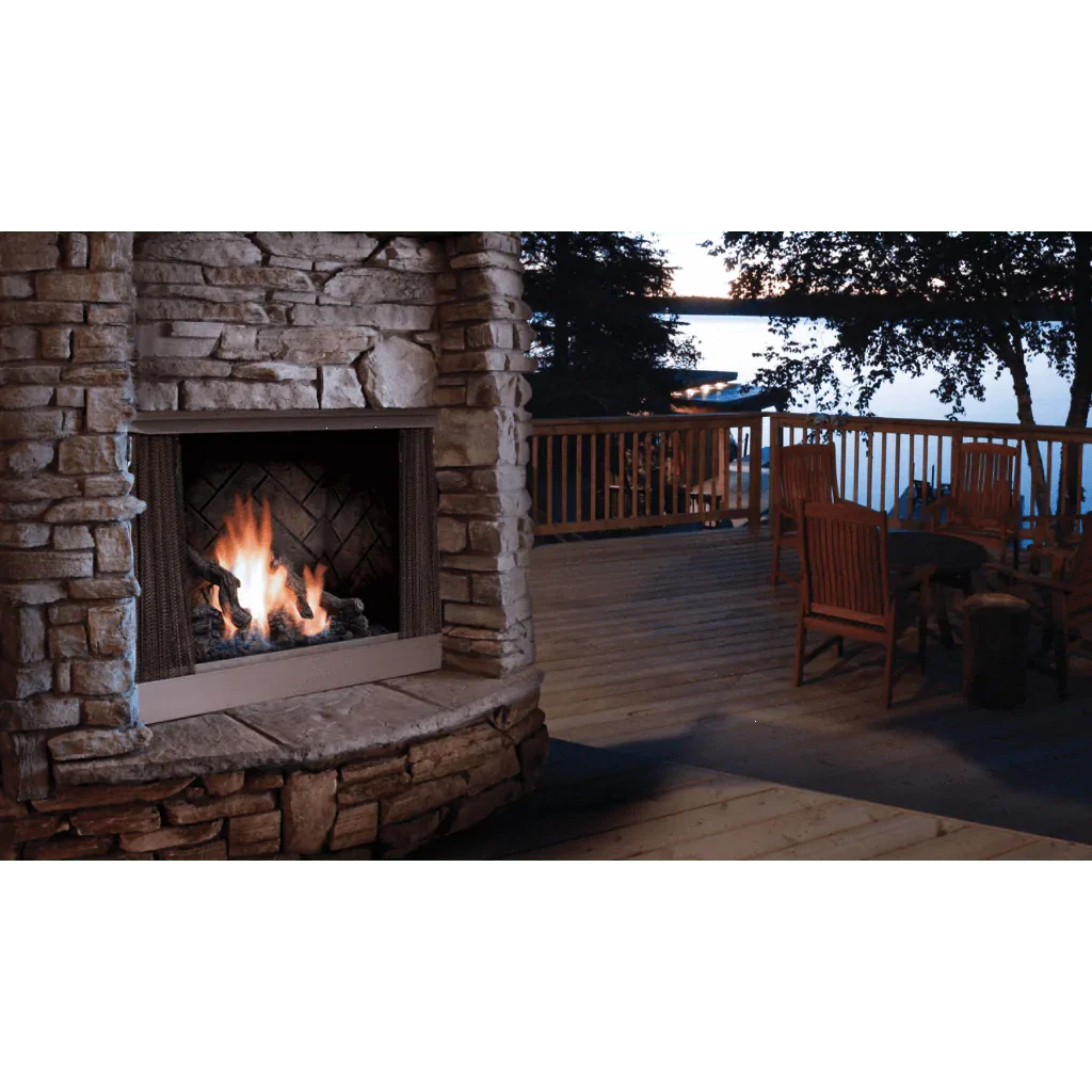 This Kingsman 42 Inch OFP42N stainless steel outdoor millivolt gas fireplace will transform your outdoor area into a warm and engaging retreat. With its high-end design and superior functionality, this Kingsman Millivolt gas fireplace can seamlessly integrate into any patio, deck, or outdoor living space. It features a painted black chassis that fits perfectly with various outdoor decors to make this zero clearance outdoor gas fireplace a vent-free outdoor fireplace. With its high viewing area, this Kingsman OFP42N gas fireplace provides a wide and enchanting view of the flames, which are beautifully accentuated by a detailed log set and a powerful heater.