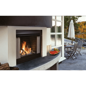 This Kingsman OFP42NE 42 IPI ventless zero clearance outdoor gas fireplace is an innovative heating solution designed to enhance your outdoor living space. With its sleek, painted black chassis and stainless steel safety barrier screens, this Kingsman gas fireplace promises warmth as well as style. The Kingsman OFP42 IPI features a powerful 55,000 BTU maximum output, capable of warming expansive outdoor spaces effortlessly. In comparison, the 38,000 BTU minimum output for natural gas and 44,000 BTU for liquid propane ensures flexibility in heat control. This Kingsman black paint gas fireplace provides a soft flicker or a roaring blaze to suit your mood.