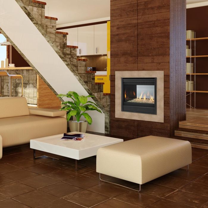 This Majestic see-through indoor 36 inch direct vent gas fireplace is a perfect blend of style and functionality. The Majestic see through direct vent gas fireplace provides a warm and inviting ambience to connected spaces with its unique design. It features mesmerizing flames and realistic ceramic fiber logs to make it a stunning focal point for any room. It is equipped with the IntelliFire Touch Ignition System, which provides reliable and efficient operation. With its battery backup, the system continues to function even during power outages. The see through direct vent gas fireplace also features glowing embers and lava rock to give it an authentic and cozy appearance.