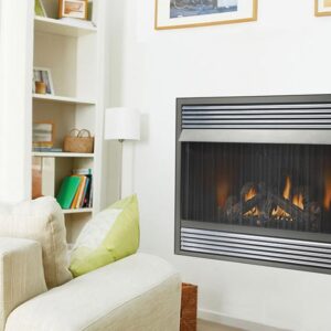 The backup control system ensures seamless operation even during power outages, offering peace of mind and continuous comfort. This Napoleon GVF42 vent-free efficiency fireplace runs on either propane or natural gas and offers an adjustable flame and heat for comfortable warmth. It is recommended for use at least 4,500 feet elevation. It is the perfect combination of traditional charm and modern technology to enhance your home’s aesthetic appeal and provide greater warmth and efficiency.