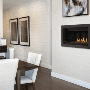 The Napoleon ascent electronic ignition 42 inch linear direct vent gas fireplace will enhance any room in your home. With its contemporary design and efficient heater, this fireplace is designed to appeal to the eye and provide efficient heat. It produces between 14,000 and 20,000 BTUs of heat to create a cozy atmosphere in any room. The clean face design has a high-quality safety barrier to make it a safe and attractive addition to your living space. With its CRYSTALINETM ember bed and crushed Topaz glass, this Napoleon ascent 42″ fireplace creates a stunning flame display.