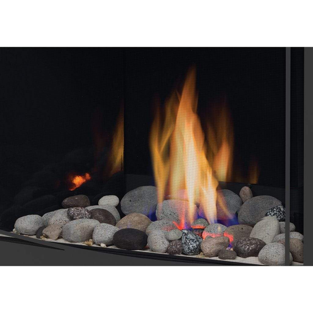 This pan-style burner fireplace can be customized to your preferences and needs. The flame’s glow can be amplified by MIRRO-FLAMETM Porcelain Reflective Radiant Panels, while decorative fronts enhance the overall design. You can add a remote control and blower kit for even more convenience. This Napoleon b36 ascent 36-inch gas fireplace is even more captivating due to AMBIENT-GLOW metal fibers. The Beach Fire, Shore Fire, and Mineral Rocks media enhancement kits offer further customization to create the perfect ambiance.
