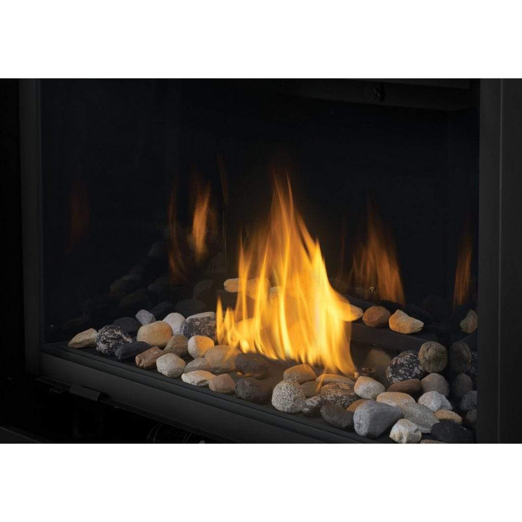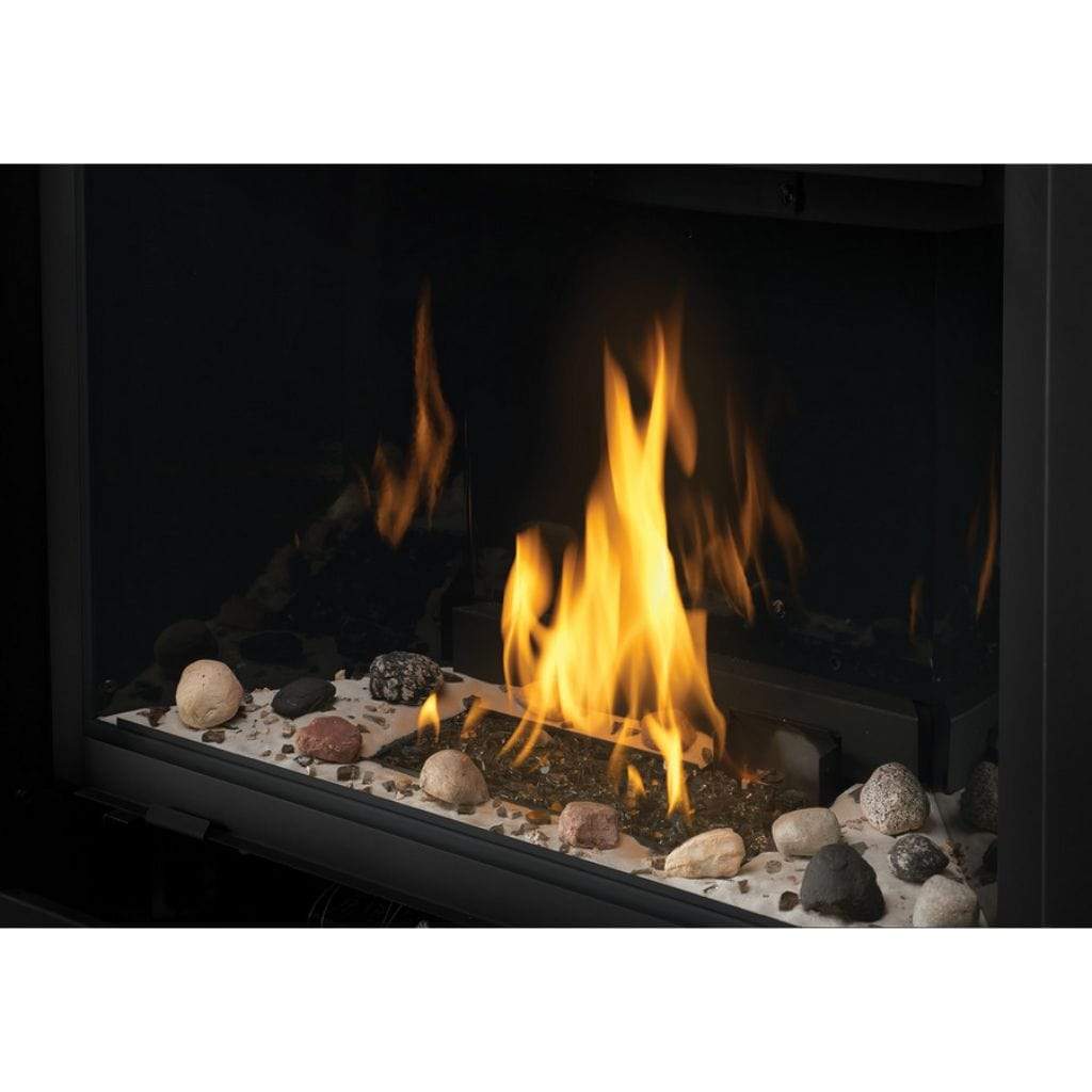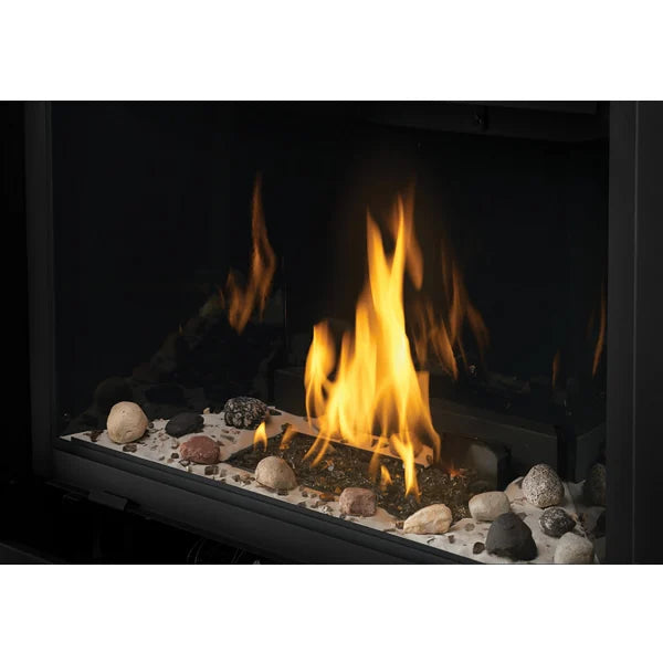 This flex connector gas fireplace is all about customization. The MIRRO-FLAMETM Porcelain Reflective Radiant Panels or trim kits, including a 2″ standard design or a 3″ premium beveled design, will enhance the look of your fireplace. The AMBIENT-GLOW metal fibers can intensify the glow of the embers when combined with a blower kit. The optional remote control allows you to change settings without leaving your seat. With Beach Fire, Shore Fire, and Mineral Rocks media enhancement kits, the Napoleon b42 ascent gas fireplace can become a unique and captivating centerpiece.