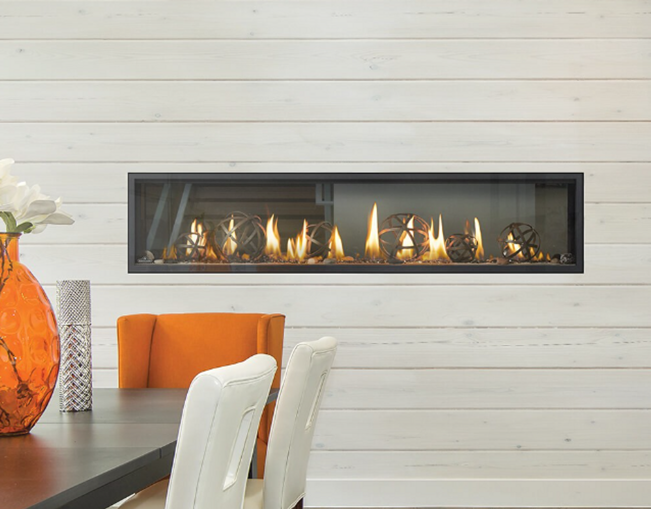 The Napoleon gas fireplace seamlessly integrates into any home decor. The expansive viewing area’s glass height provides an unobstructed view of the striking flames from multiple angles and makes it a great focal point for open-plan spaces. With Napoleon’s President Limited Lifetime Warranty, this fireplace is guaranteed to last a lifetime. This Napoleon see through gas fireplace enhances your home’s ambiance and provides the ultimate in comfort and luxury.