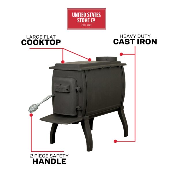 The US Stove US1261E heater meets the 2020 U.S. Environmental Protection Agency’s crib wood emission limits for woodheaters sold after May 15, 2020. Under specific EPA test conditions burning Douglas Fir dimensional lumber this heater has been shown to deliver heat at a rate of 28,786 to 33,557 Btu/hr. This heater achieved a particulate emissions rate of 1.9 g/hr when tested to method ASTM E2780-10 single Burn Rate Appendix (*and an efficiency of 68%.).