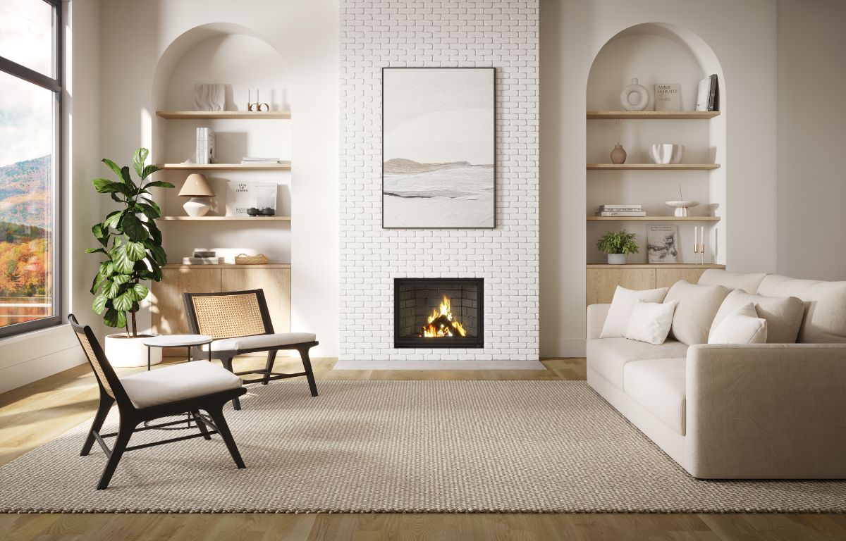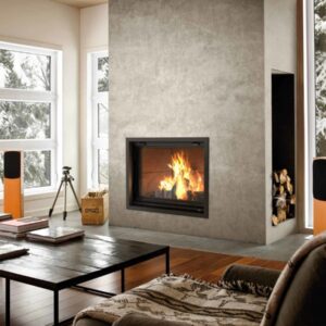 Measuring 64 1/8″ high and 52″ wide, the Valcourt Antoinette is as striking as it is functional. The expansive ceramic glass enhances the ambiance, making it perfect for homeowners seeking style and performance. Elevate your living space with this eco-friendly, high-efficiency wood fireplace.